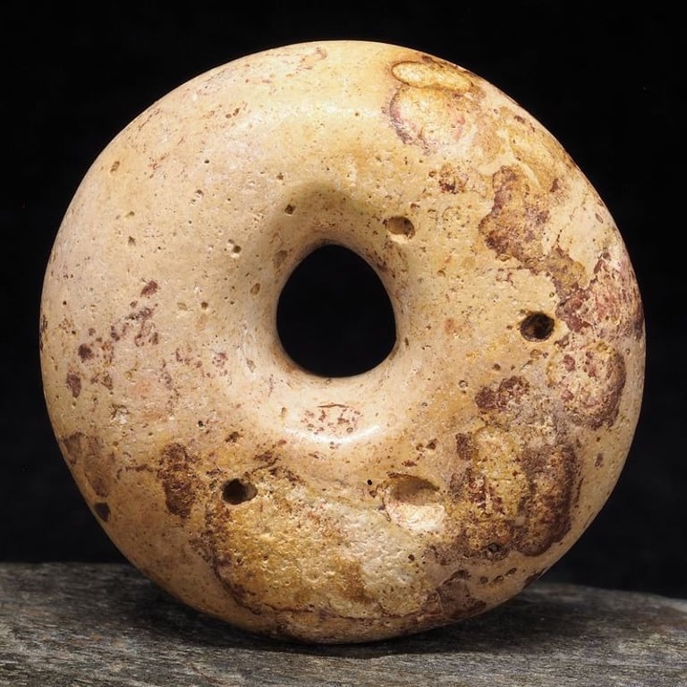 The forms are basic. Some present as bone-like effigies, others pertain to stone, featuring schematic etchings or spirals. The simplicity of the designs contrast with the complexity of their essence; it's a dance between the crude material world and the intangible philosophies which induce it.